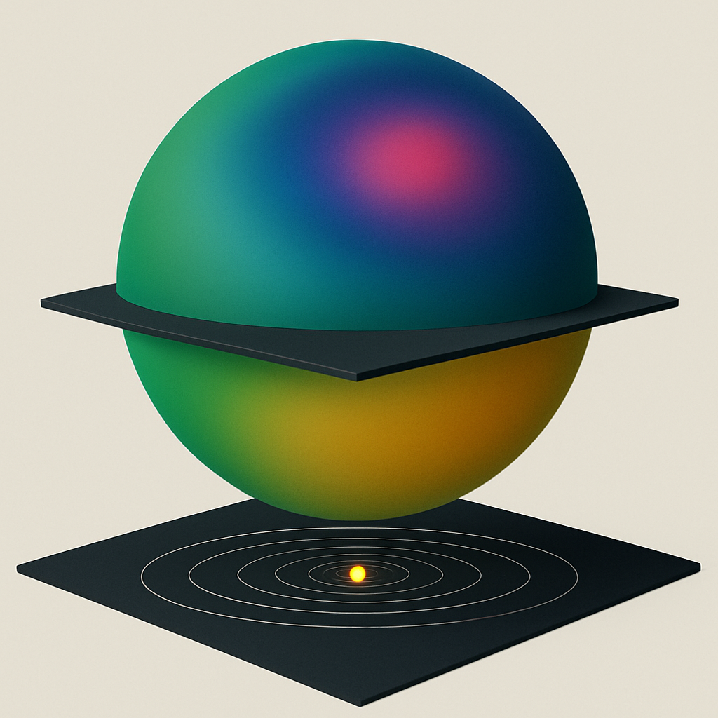 Interessant wird es beim Quadrupol, also dem Bild mit den vier Vierteln. Hier sollten wir jetzt die echten Variationen der Hintergrundstrahlung sehen. Ebenso beim Oktupol, also dem Bild mit den Achteln, und so weiter. Und jetzt sind wir direkt bei der Achse des Bösen angekommen. Bleiben wir dafür nochmal ein bisschen beim Quadrupol. Wir haben also den ganzen Himmel in vier Bereich geteilt und die jeweilige Durchschnittstemperatur bestimmt. Wir haben ein Muster bekommen, aus kalten und warmen Bereichen. Und können uns jetzt überlegen, ob es eine Richtung gibt, in der das Muster besonders stark ausgeprägt ist. Das soll folgendes bedeuten: Wir stellen uns das Universum als große Kugel vor und malen die Oberfläche der Kugel entsprechend der Temperatur der Hintergrundstrahlung an. Ein warmes Viertel wird rot, ein kaltes blau, und so weiter. Wie genau müssen wir diese Kugel dann drehen, dass das entstehende Muster möglichst symmetrisch aussieht? Wir können so dann quasi eine Ebene bestimmen, die die warmen von den kalten Bereichen trennt und wir können schauen, in welche Richtung diese Ebene zeigt. Diese Richtung ist die „Achse des Quadrupols“ und wir können genau so eine Achse des Oktupols bestimmen, und so weiter. In Wahrheit ist das, wie gesagt, mathematisch alles ein wenig komplexer, aber fürs Erste reicht auch die vereinfachte Erklärung.